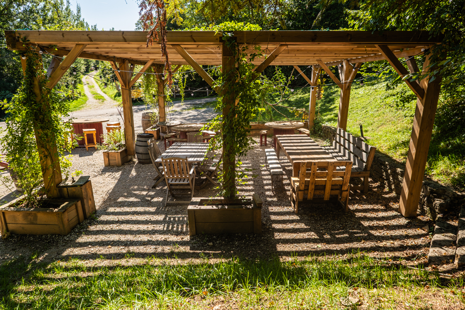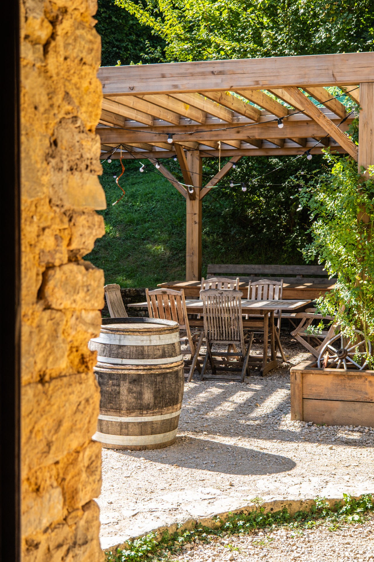 - une pergola ombragée, bercée par le bruit de la source juste à proximité,
