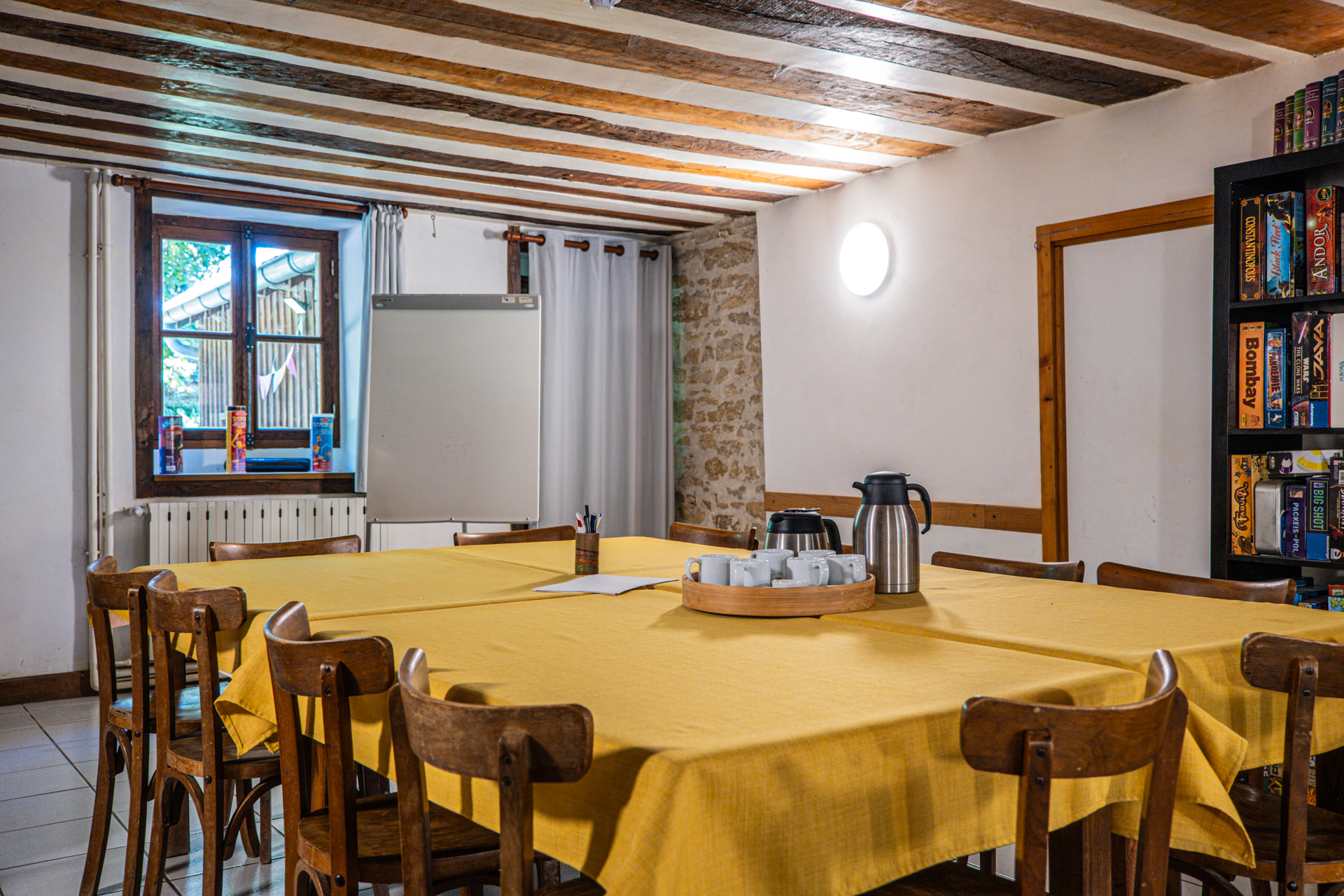 Différents espaces de travail intérieurs et extérieurs, des repas faits maison avec des produits locaux, des idées d’animations et activités sur place ou sur le territoire, la possibilité de dormir sur place, de privatiser le lieu… Tout est réuni pour vous faire passer un très bon moment lors de vos journées de travail !