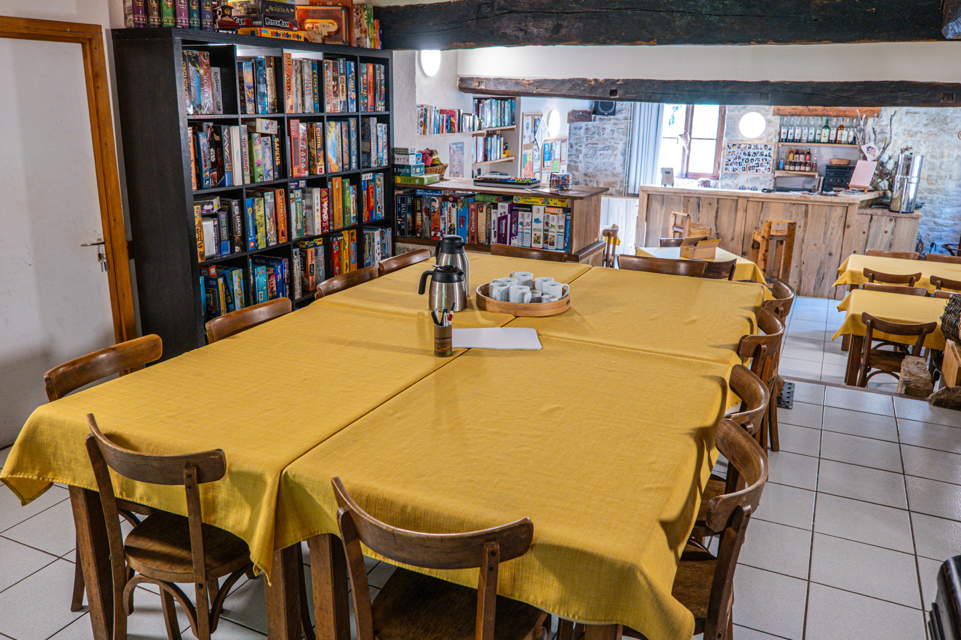 Un espace extérieur agréable et ressourçant et pléthore de jeux de société pour passer une bonne soirée.